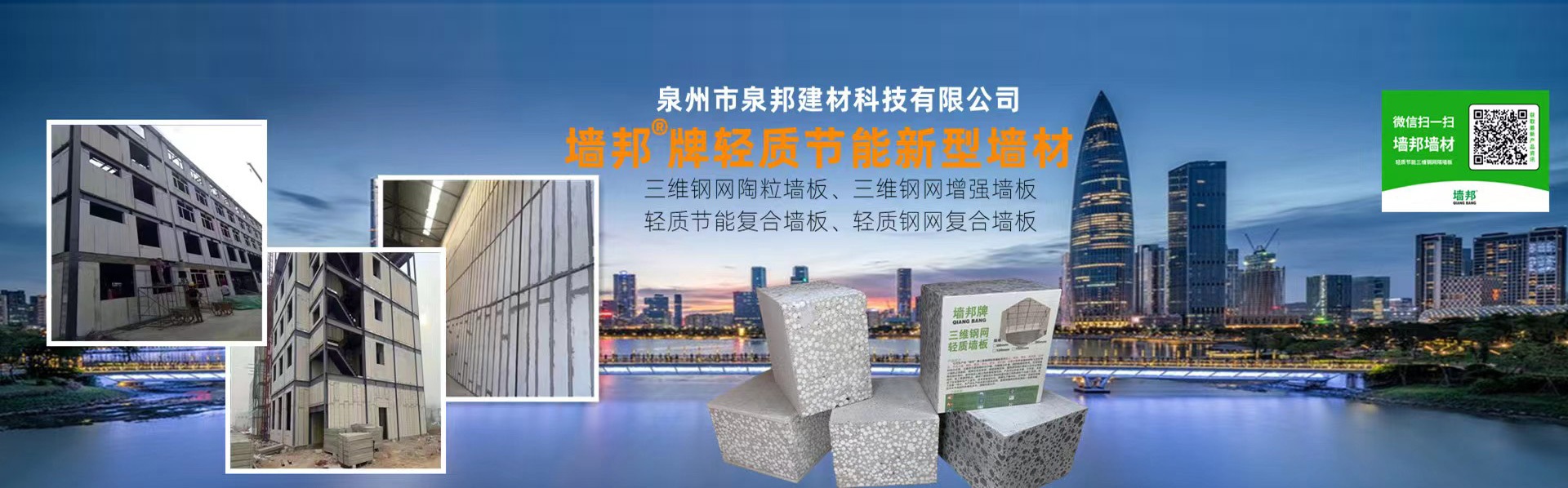 泉州市泉邦建材科技有限公司是一家集新型墻材、配套機械設備、新型拼裝住宅研發與生產、銷售、生產技術配套以及產品應用推廣為一體的高新技術企業。